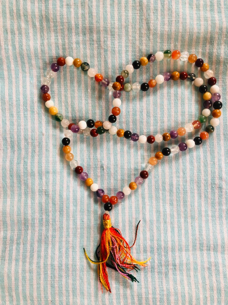 «El japa mala tradicional tiene 108 abalorios. En los círculos más esotéricos de la filosofía oriental el número 108 se considera el más afortunado, un perfecto dígito de tres cifras, múltiplo de tres y cuyos componentes suman nueve, que es tres veces tres. Y tres, por supuesto, es el número que representa el supremo equilibrio, como sabe cualquiera que haya estudiado la Santísima Trinidad … El caso es que todo japa mala tiene un abalorio de más, un abalorio especial —el número 109— que queda fuera del círculo equilibrado que forman los otros 108, colgando como un amuleto… Cuando estás rezando y lo alcanzas con los dedos, debes interrumpir la concentración de la meditación para dar las gracias a tus maestros. Así que aquí, en mi abalorio 109, me detengo incluso antes de haber empezado. Quiero darlas gracias a todos mis maestros, que han aparecido en mi vida, a lo largo de este año, de la manera más variopinta.» – Elizabeth Gilbert en su libro Comer, Rezar y Amar