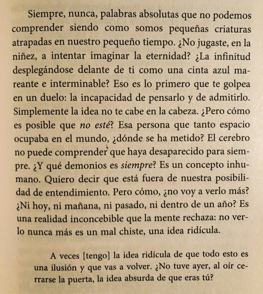 Sincrónicamente recomiendo este libro hoy. Me encanta y desde aquí me convertí en fan de esta escritora. Me hubiera gustado que alguien me dieran este libro cuándo mi mamá murió. Con el tiempo… asimilé que uno no deja de extrañarlos o de sentir dolor, sino aprende a vivir con eso nuevo que ha mutado en tu ser.